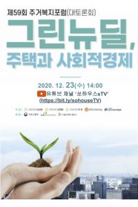 자료집 내려받기 https://drive.google.com/file/d/1cX39jTe-ssxT-q76NT0xDRtGgDMdnuuQ/view?usp=sharing ‘그린뉴딜, 주택과 사회적 경제’토론회 (2020년 12월 23일, 14시 온라인 진행) (사)한국사회주택협회는 한국주거복지포럼과 공동으로 “그린뉴딜, 주택과...