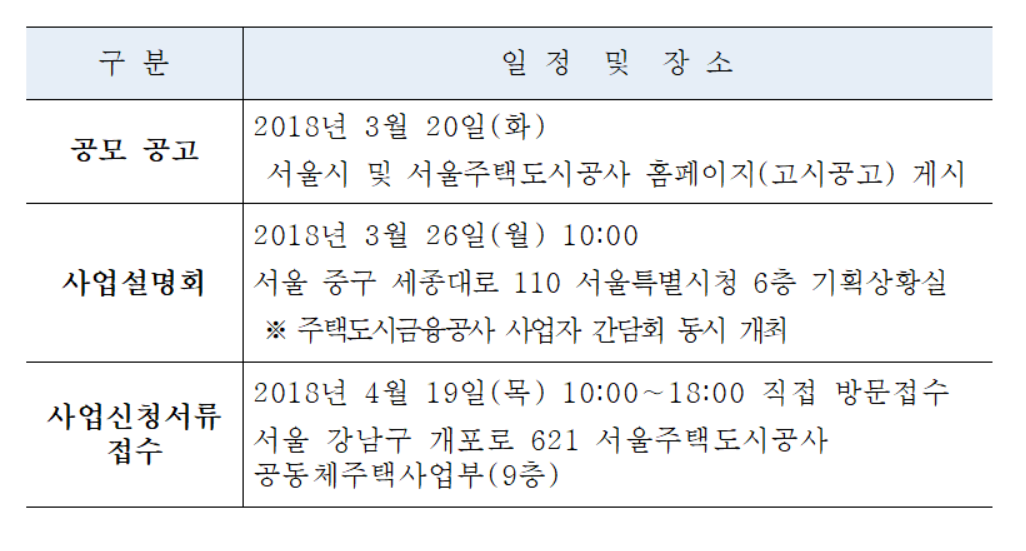 한국사회주택협회 - 2018 서울시 토지임대부 사회주택 사업공모 공고
