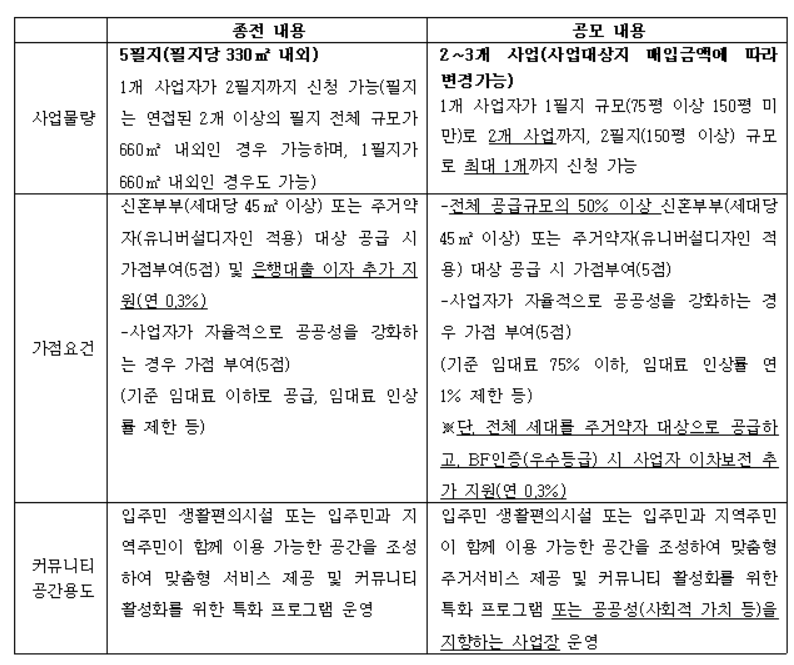 서울특별시에서 면목동 겸재교 일대 그룹화 된 공공토지를 장기임대한 후 공동체주택마을을 설계, 건설, 운영할 민간 통합운영주체 (민간사업자)를 아래와 같이 공모하오니 많은 참여를 바랍니다. 1.공모개요 - 사업명 : 면목동 공동체주택마을사업 통합운영주...